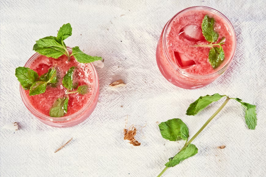 - Strawberry Margarita with a base of vodka, lemon juice, strawberry juice, simple syrup